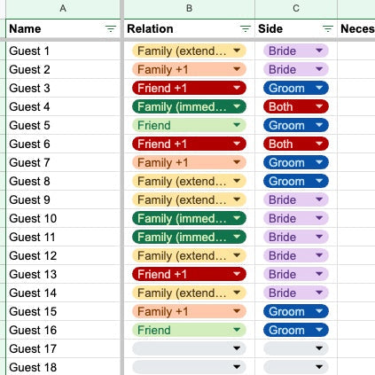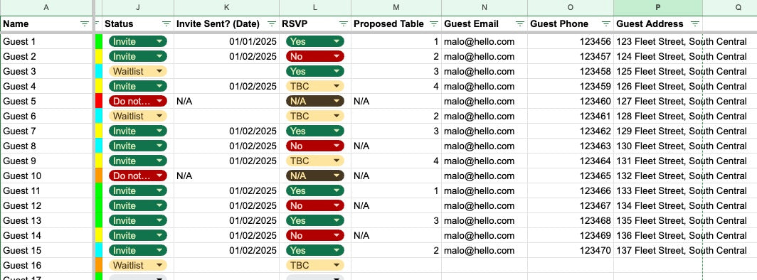 Wedding Guest List Spreadsheet | Organisational Planning Tool